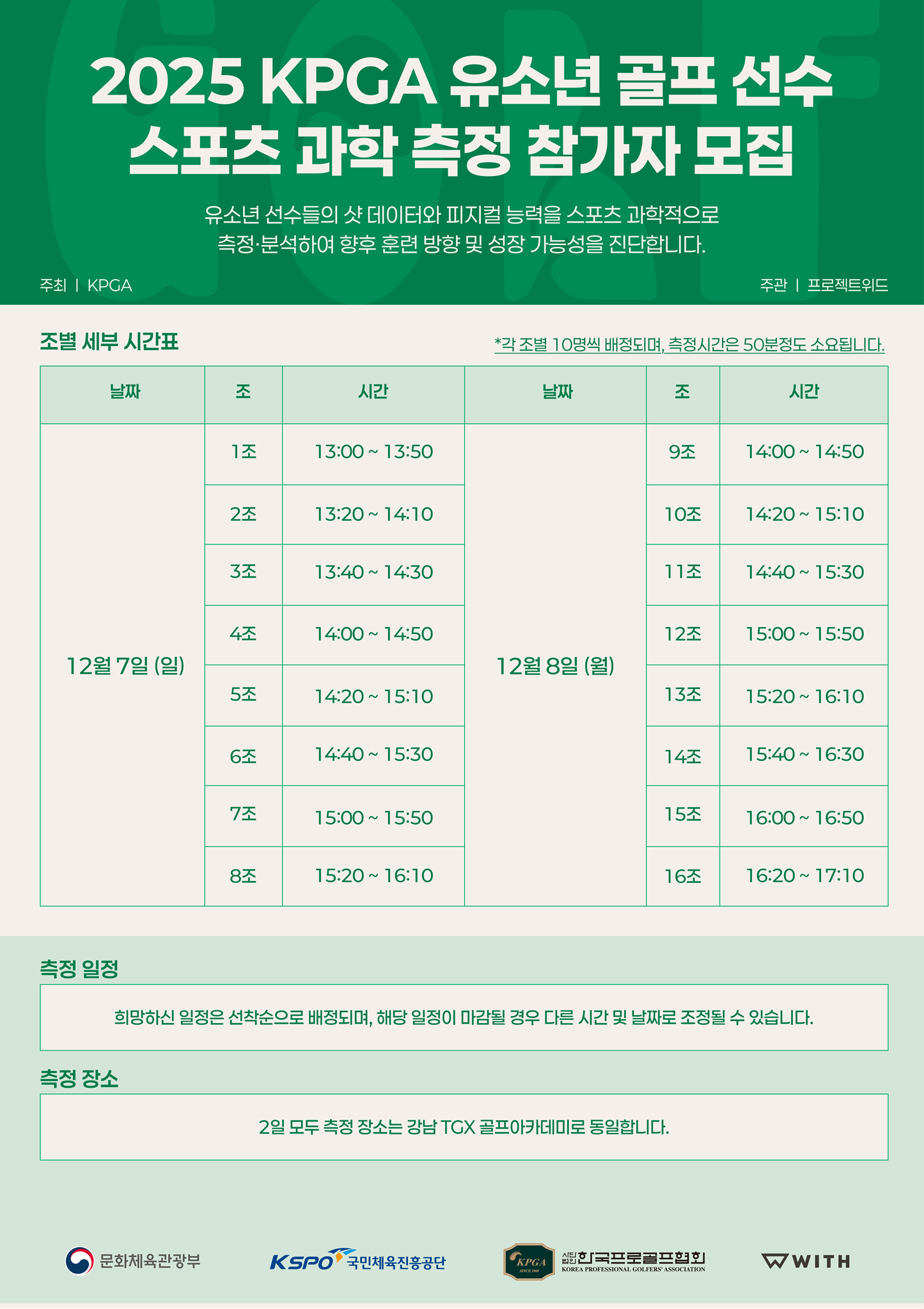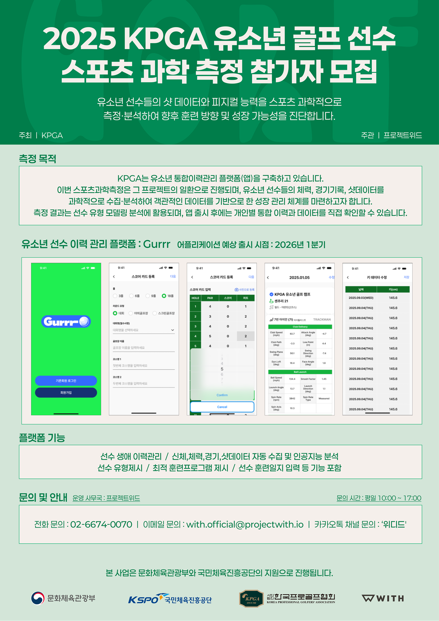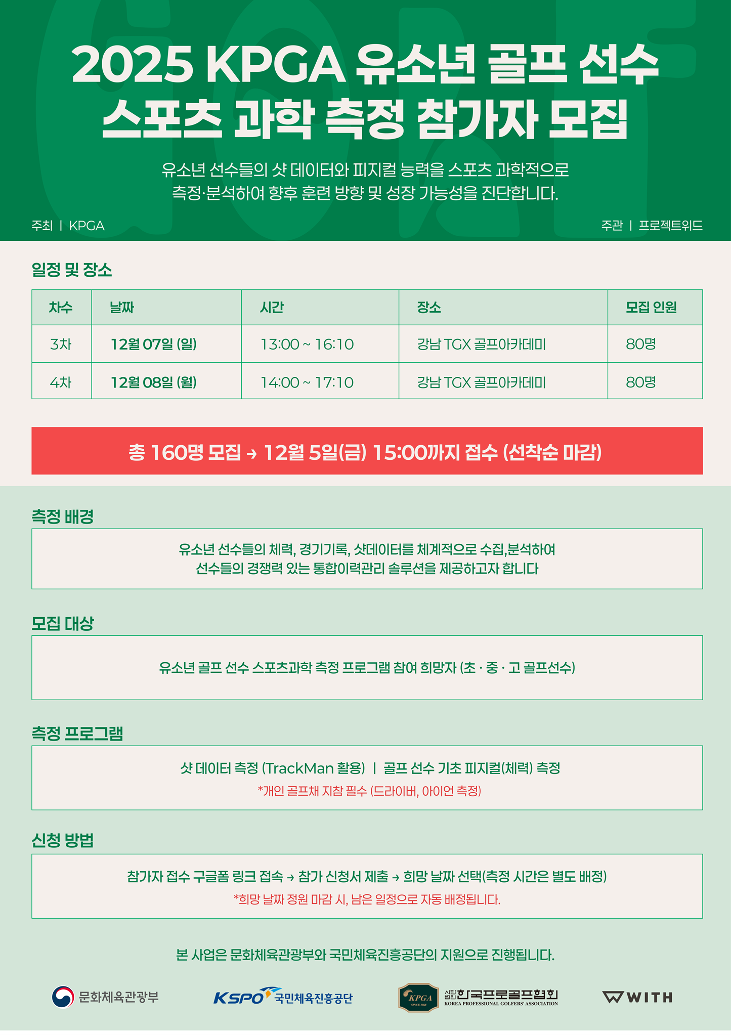 2025 KPGA À¯¼Ò³â °ñÇÁ¼±¼ö ½ºÆ÷Ã÷°úÇÐ ÃøÁ¤ Âü°¡ÀÚ ¸ðÁý ¾È³»